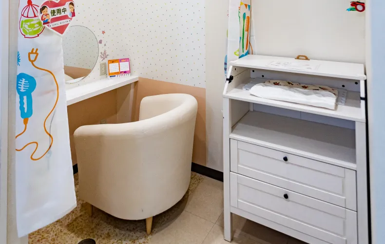 授乳やおむつ替えができるスペースを完備。人目を気にせず使えるよう、プライバシーに配慮しています。