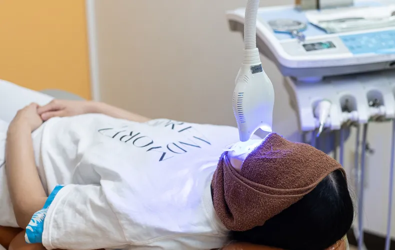 オフィスホワイトニング | 歯医者で行うホワイトニングです。当院では8分間照射×2セット施術いたします | 約60分/15,400円 |